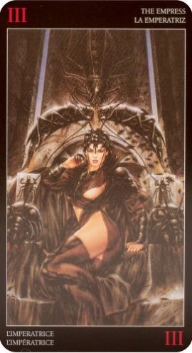 Jogo de 78 cartas tarot com ilustrações de Luis Royo, editado por Lo Scarabeo em 2012.